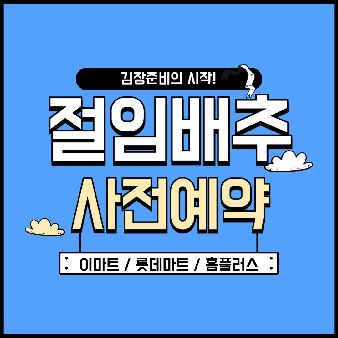 대형마트 3사 절임배추 가격과 사전예약 기간 및 수령일자 선택 방법에 대해 알려드리겠습니다. 요즘 김장철이 다가오면서 절임배추에 대한 관심이 높아지고 있는데요, 대형마트에서 제공하는 절임배추의 가격과 예약 방법을 자세히 알아보도록 하겠습니다.