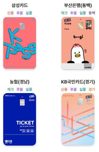 - 버스, 지하철, GTX, 공항버스, 일부 광역·농어촌 버스에서 사용