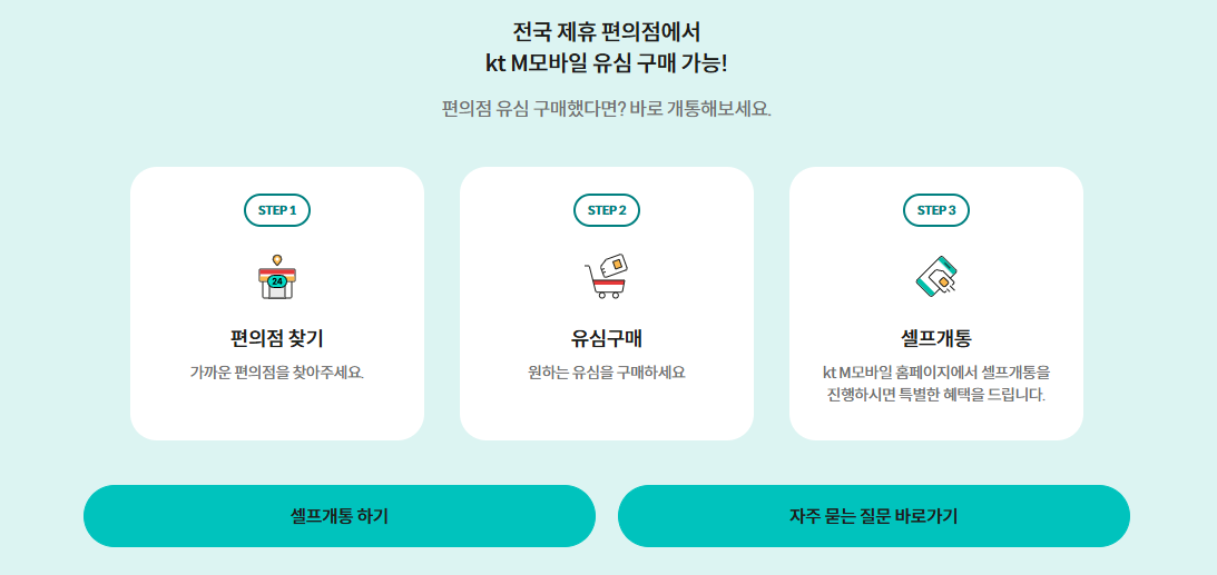 KT M모바일 공식 홈페이지와 셀프개통을 통해 가입할 수 있습니다.